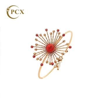 PCX Jewelry's Luxury 18K Gold Bracelet Fine Bangle with Laser Bead Embroidered Exaggerated Flower Ball