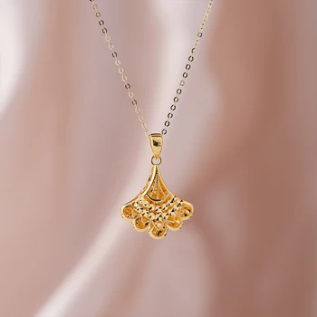 PCX Jewelry NS 18k Gold Necklace Pendant Luxury Fan Shape Skirt Solid Gold Necklace for Women High Quality Wedding Accessory