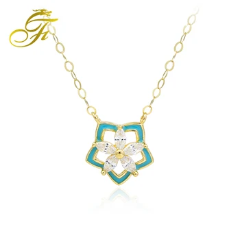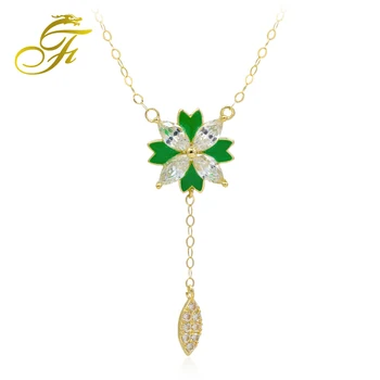 Mother's Day Jewelry Gift 9K Pure Gold Necklace 14K Solid Gold 18K Necklaces with Zircon Choose Your Color for Weddings