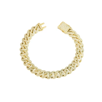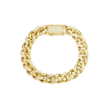 PCX Jewelry Glittering 18K Gold Cuban Chain Bracelet with Full Diamond Pavé for Party & Hip-Hop Street Style