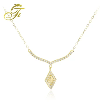 FULONG 18K Pure Gold Jewelry Solid 18k Golden Charms Zircon Inset Choker Pendant Necklace for Wedding or Gift