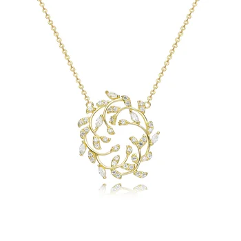 Wheatear 18K Pure Gold Chain Sunflower Leaf Garland with Retro Super Fairy Zircon Full Diamond Gold Pendant Fine Necklaces